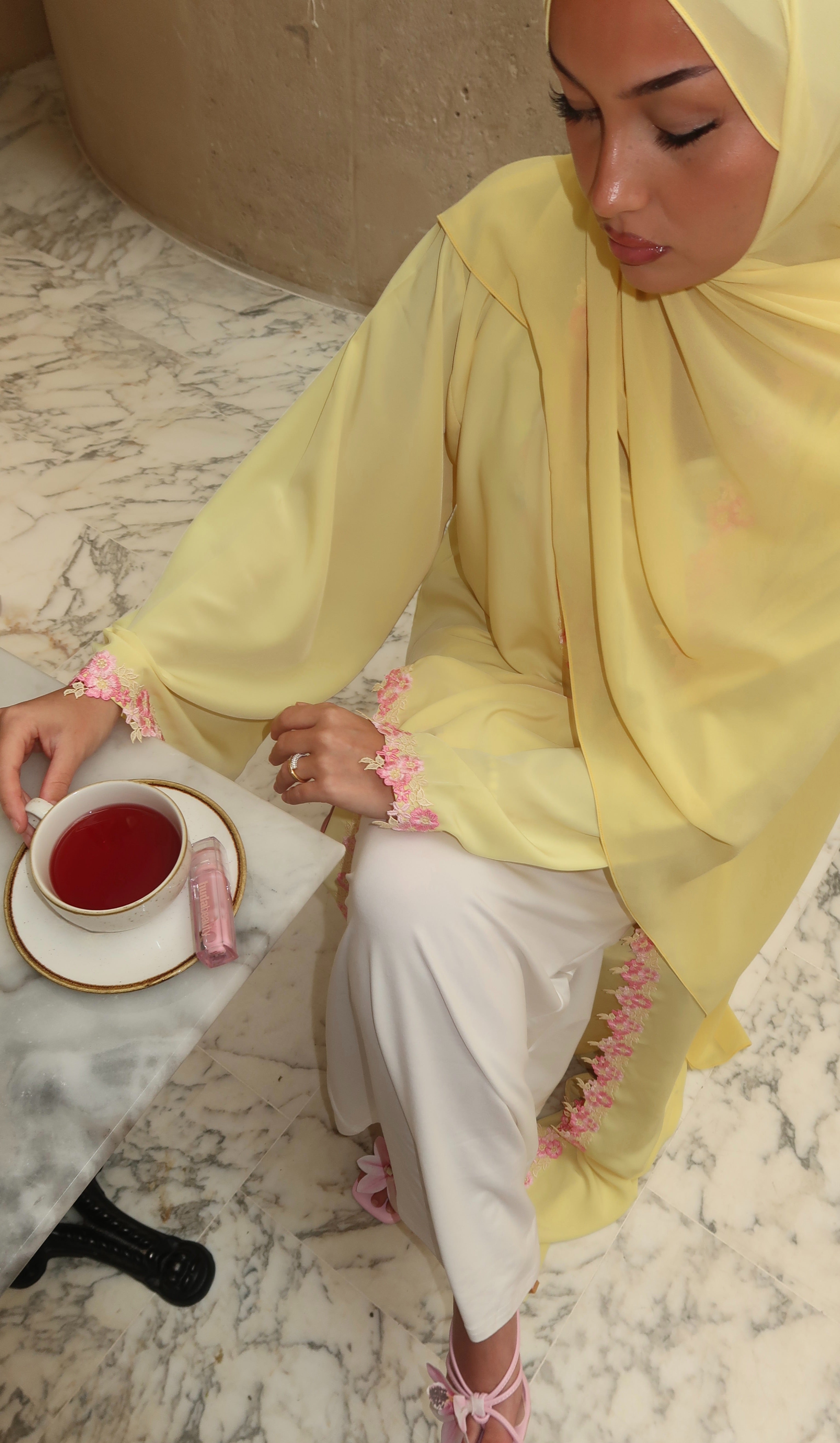 [CREATION ATELIER DUBAÏ] Kimono en Dentelle doublé mousseline - hijab inclus