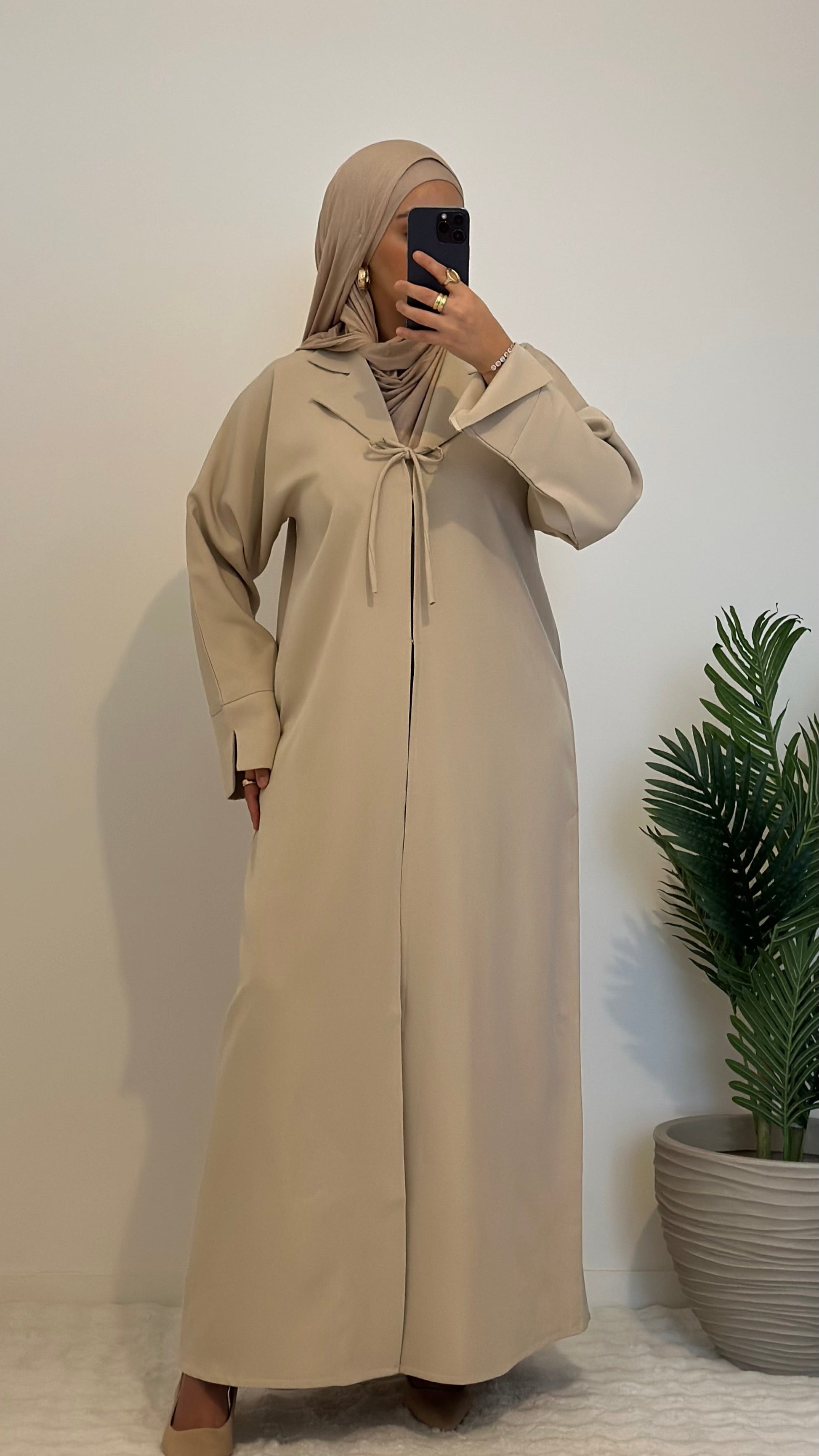 Disponible en beige, noir et marron, cette abaya intemporelle est un indispensable pour une garde-robe élégante et sophistiquée.