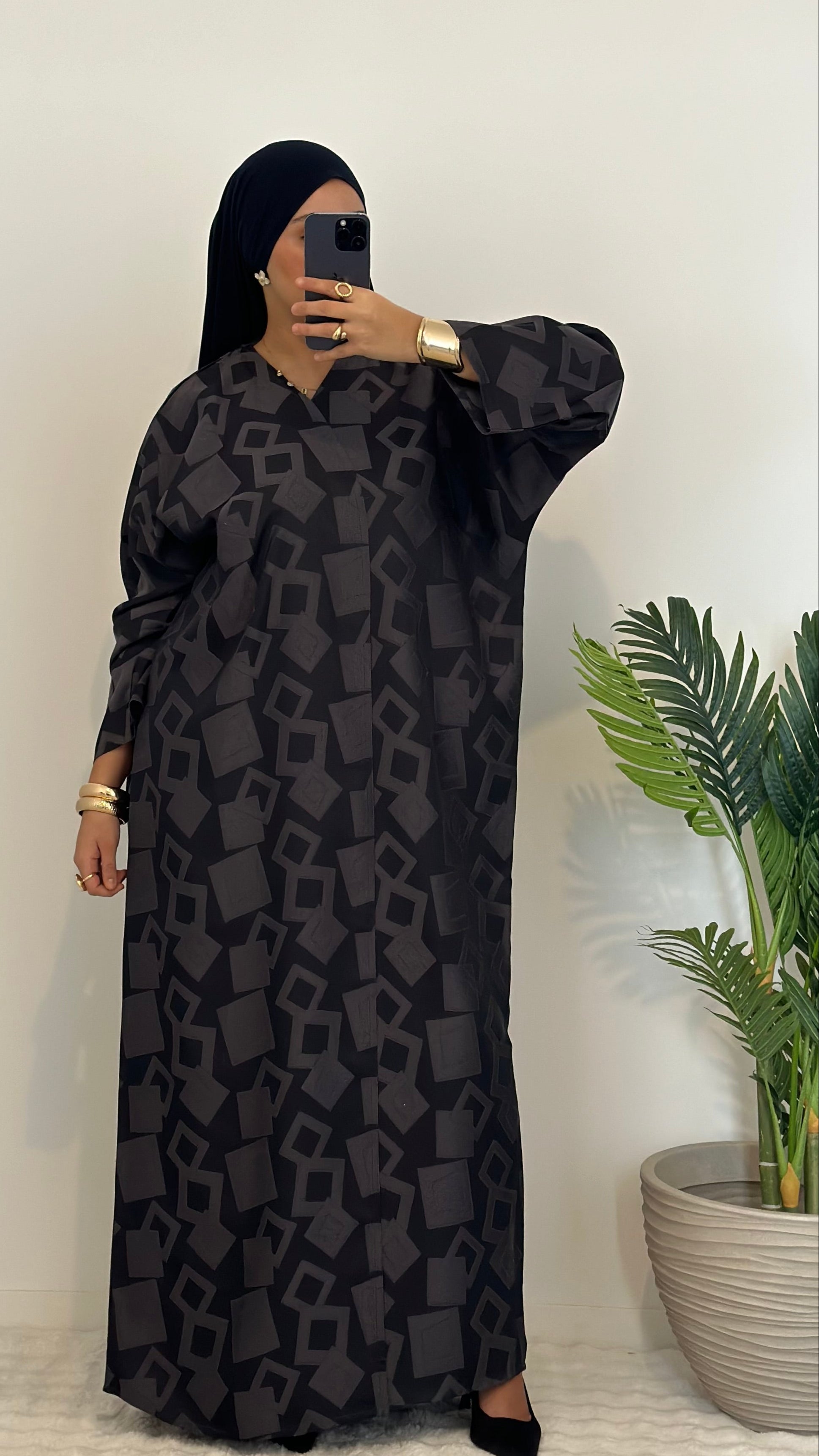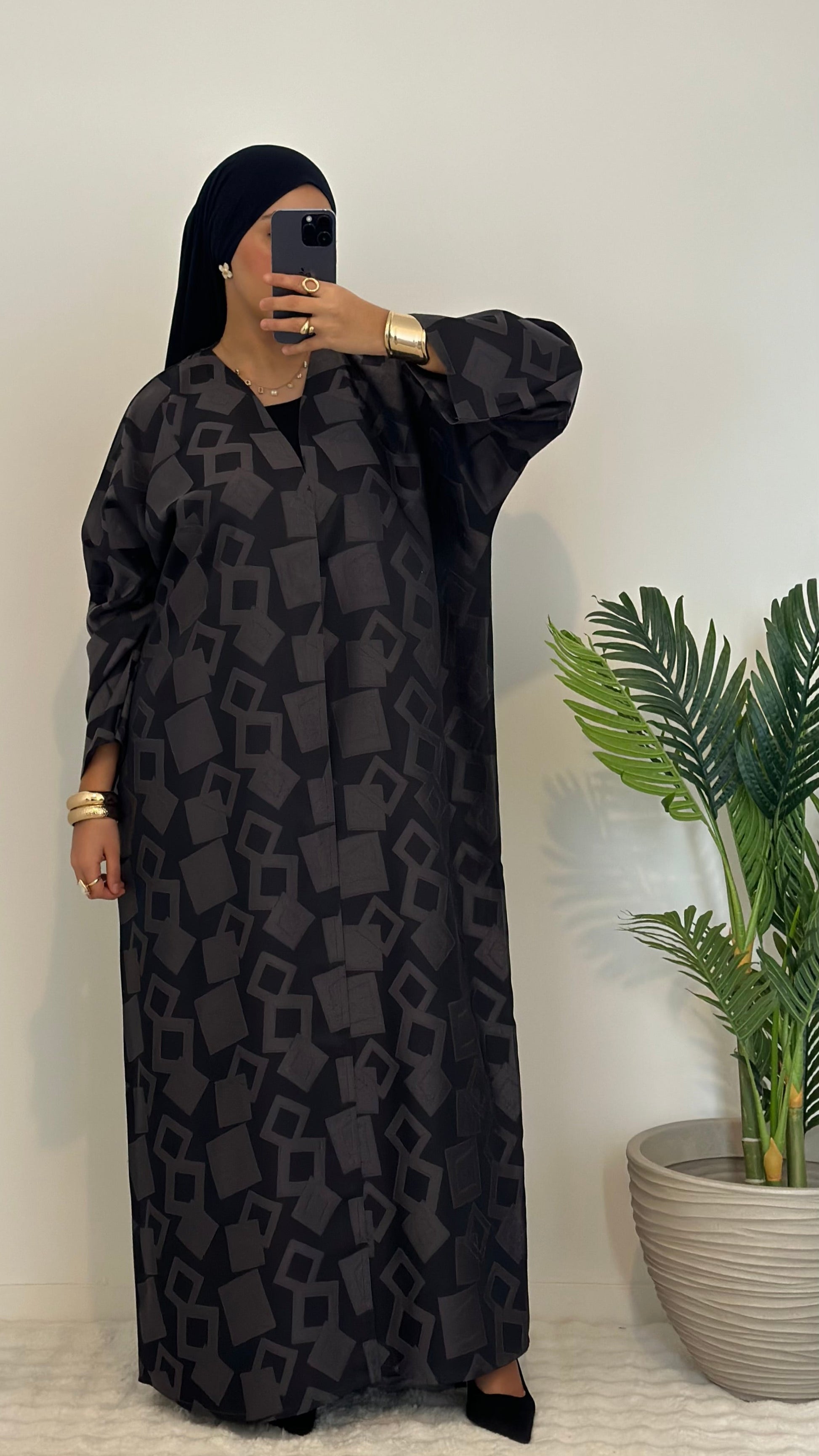 Ce magnifique kimono, une création unique Made in Dubaï, se distingue par son élégance et son raffinement. Son tissu de haute qualité est orné de carreaux subtils qui captent la lumière pour un léger effet brillant, ajoutant une touche sophistiquée à votre tenue. Parfait pour les occasions spéciales et les fêtes, il allie confort et luxe grâce à ses finitions impeccables.